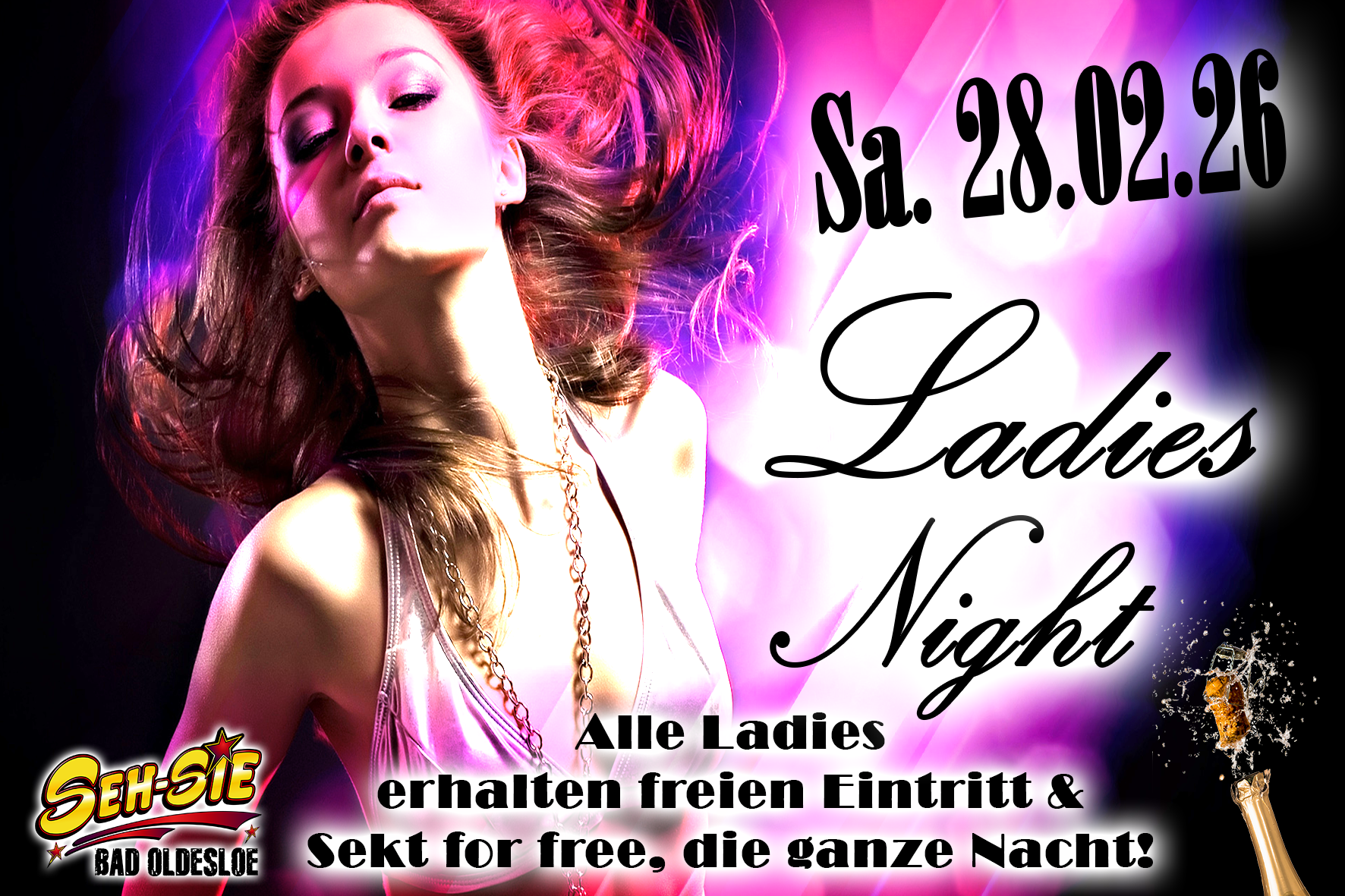 Wir spendieren die ganze Nacht Eintritt & Sekt for Free für alle Ladies 🤩🍾